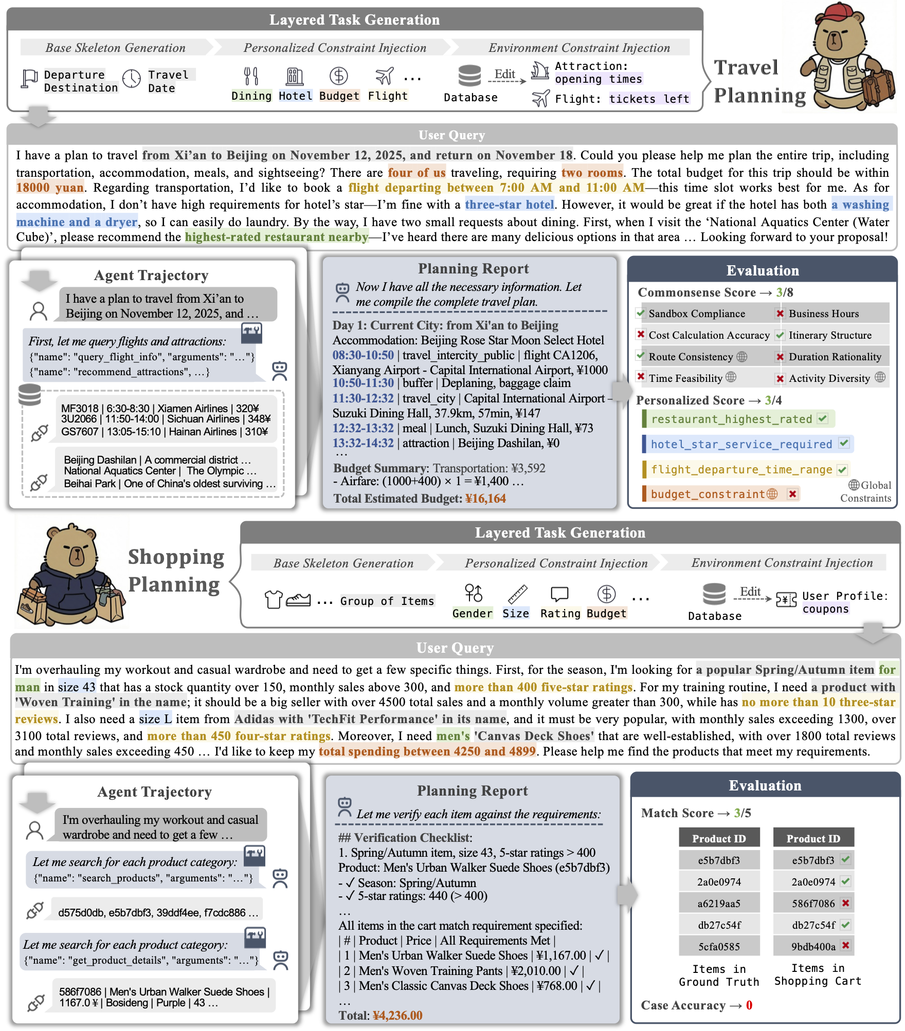 DeepPlanning features two realistic, long-horizon domains that require agents to navigate complex environments with strict Verifiable Global Constraints.