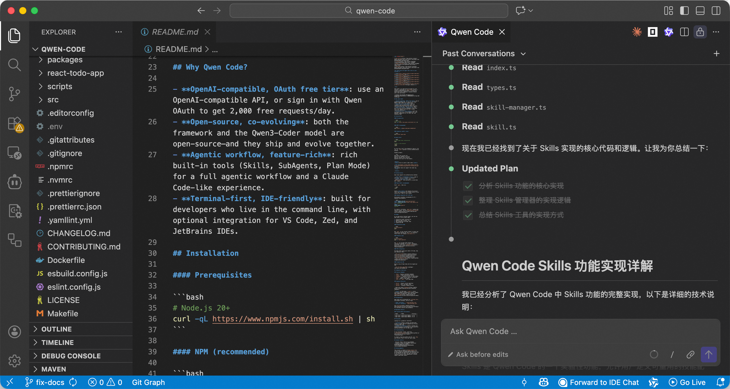 Qwen Code features advanced capabilities like Skills, SubAgents, and Plan Mode, making the Agent more autonomous and reliable. The Approval Mode ensures work safety by allowing step-by-step confirmation, or you can enable YOLO Mode to let the AI operate with full autonomy.