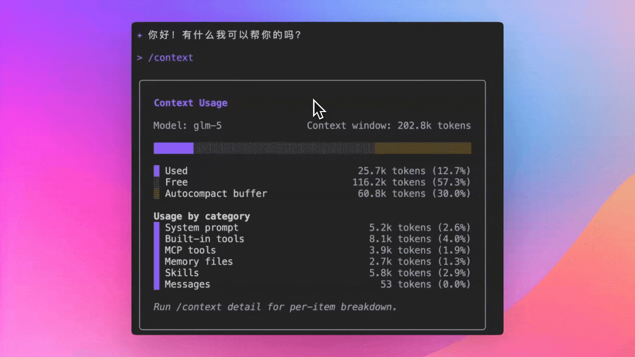 Use /context command to see detailed Token consumption in context window: which files are using how many Tokens, how much space is left—all at a glance.